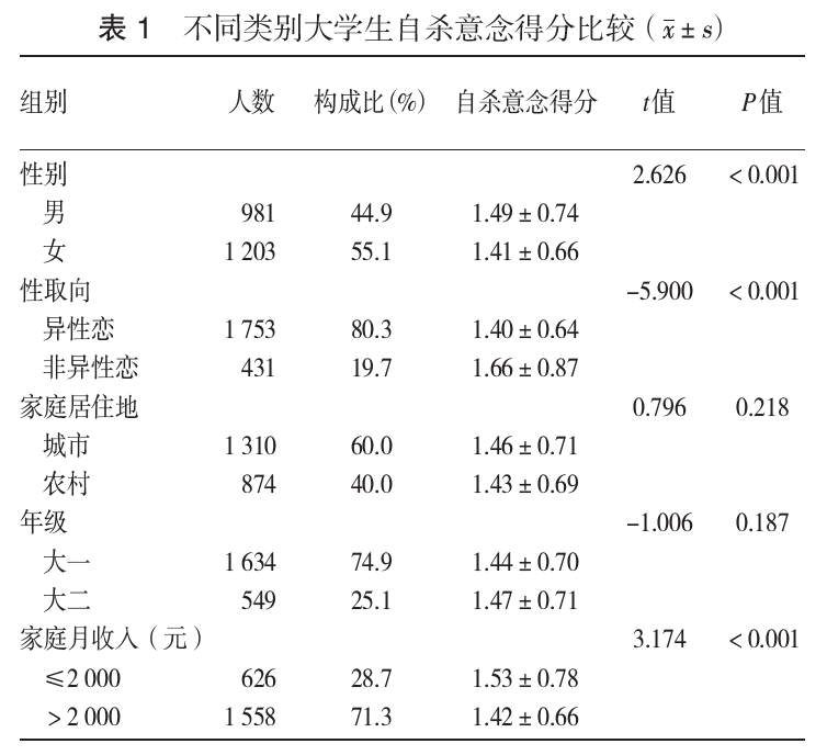 目的 探究大学生网络受欺凌和自杀意念之间的关系、反刍思维的中介作用及不确定心理压力的调节作用,为大学生自杀意念预防及干预提供科学依据。方法 采用方便抽样法于2023年9 —10月对徐州市某所全日制普通高校大一、大二年级在校生的网络受欺凌行为、反刍思维、自杀意念状况及不确定心理压力进行调查,并构建潜变量结构方程模型,分析反刍思维在网络欺凌和自杀意念之间的中介作用及不确定心理压力的调节作用。结果 大学生自杀意念得分在性别、性取向、家庭年收入上存在显著差异(P<0.01)。网络受欺凌、反刍思维和自杀意念两两之间呈现正相关。潜变量结构方程模型显示,网络受欺凌对自杀意念(β=0.428,P<0.05)和反刍思维(β=0.579,P<0.05)有显著直接影响。反刍思维在网络受欺凌与自杀意念间起中介作用(间接效应β=0.183,P<0.01),中介效应占比30%。不确定心理压力对中介模型的调节效应显著(P<0.01), 高心理压力水平下,网络受欺凌与自杀意念的关联更强(β=0.366, P<0.001),低心理压力水平下,该关联仍然存在但关联强度较低(β=0.247,P<0.001)。结论 网络受欺凌和反刍思维均显著影响自杀意念,且反刍思维起部分中介作用。不确定心理压力调节该关联,压力越大,网络欺凌对自杀意念的影响越大。因此,针对遭受网络欺凌的大学生群体,应优先干预其反刍思维,同时通过压力管理训练降低不确定心理压力水平,对预防大学生自杀意念有一定的影响。