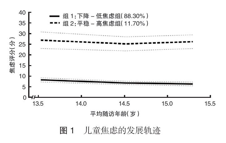 目的 探索儿童焦虑/抑郁的发展轨迹及其影响因素,为儿童心理障碍的预防和干预提供实证依据。方法 基于课题组2014年采用目的抽样法建立的重庆市区4所小学男女童青春发育队列,分别于2019、2020和2021年进行3次随访调查。以自编问卷收集研究对象的基本信息,通过体格检查获得儿童身高、体重和青春发育数据,基于儿童焦虑性情绪障碍筛查量表和儿童抑郁量表评估儿童焦虑和抑郁情况。采用群组轨迹模型识别儿童焦虑/抑郁发展轨迹,通过χ2检验分析不同轨迹儿童的特征分布,并采用无序多分类logistic回归模型探索发展轨迹的影响因素。结果 最终纳入812名儿童。根据群组轨迹模型,儿童焦虑的发展轨迹可划分为下降-低焦虑组(n=717,88.30%)和平稳-高焦虑组(n=95,11.70%);以下降-低焦虑组为参照组,年龄≥14岁[OR=3.31, 95%CI(1.61~6.81),P=0.001]和自觉父母关系一般或不太好[OR=2.23,95%CI(1.23~4.07),P=0.003]是儿童发展为平稳-高焦虑轨迹的危险因素,母亲文化程度为高中或中专[OR=0.36,95%CI(0.18~0.72),P=0.004]、大专及以上[OR=0.40, 95%CI(0.17~0.94),P=0.038]是儿童发展为平稳-高焦虑轨迹的保护因素。儿童抑郁的发展轨迹可划分为平稳-低抑郁组(n=486,59.85%),平稳-中等抑郁组(n=266,32.76%)和上升-高抑郁组(n=60,7.39%);以平稳-低抑郁组为参照组,自觉父母关系比较好[OR=2.04,95%CI(1.43~2.91),P<0.001]、一般或不太好[OR=2.60, 95%CI(1.70~4.00),P<0.001]是儿童发展为平稳-中等抑郁轨迹的危险因素。除上述因素外,性别为女生[OR=3.02,95%CI(1.57~ 5.78),P=0.001]和知道较多青春期性知识[OR=2.31,95%CI(1.18~4.49),P=0.014]是儿童发展为上升-高抑郁轨迹的危险因素,母亲文化程度为高中或中专[OR=0.35,95%CI(0.16~0.78),P=0.011]、大专及以上[OR=0.24,95%CI(0.08~0.73),P=0.012]是儿童发展为上升-高抑郁轨迹的保护因素。结论 本研究识别出2种儿童焦虑和3种儿童抑郁的发展轨迹,大多数儿童情绪能保持平稳水平。母亲文化程度、自觉父母关系等是儿童焦虑/抑郁发展轨迹的共有影响因素。